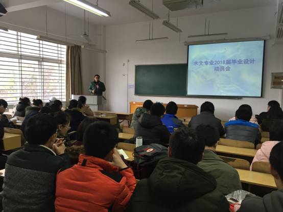 (图/文陈敏)12月25日下午2点,水文与水资源工程专业在J-3216召开了2014级毕业设计动员大会。2014级水文专业全体学生及部分教师参加了会议。