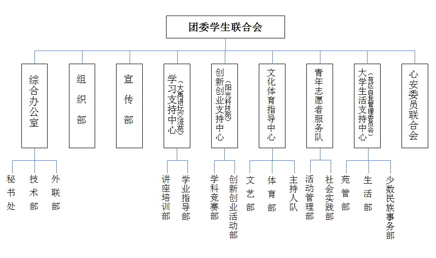 bet87365线路检测团学联下设9大机构共计18个部门,具体设置如下: