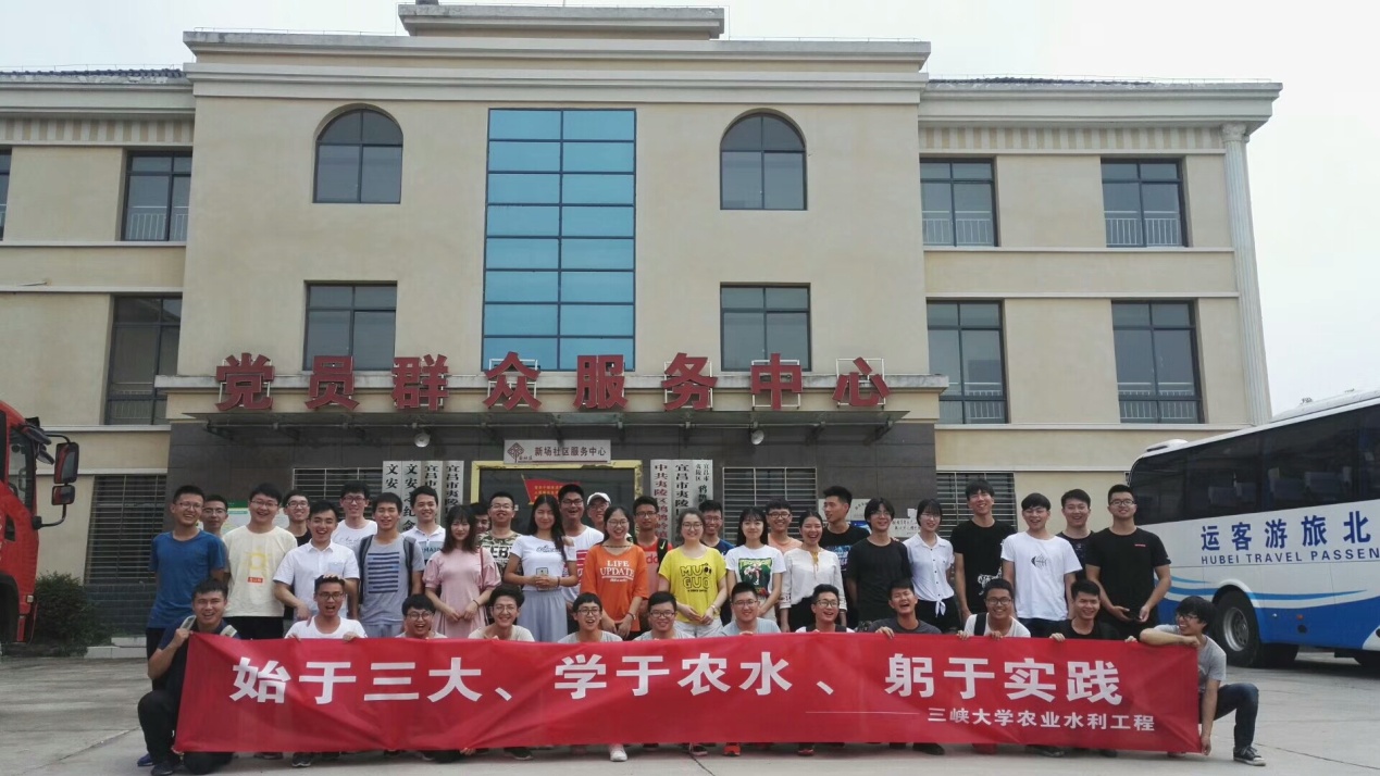 实习结束时,在村党员群众服务中心前,同学们拿出事先准备好的横幅“始于三大、学于农水、躬于实践”一起合影留念。