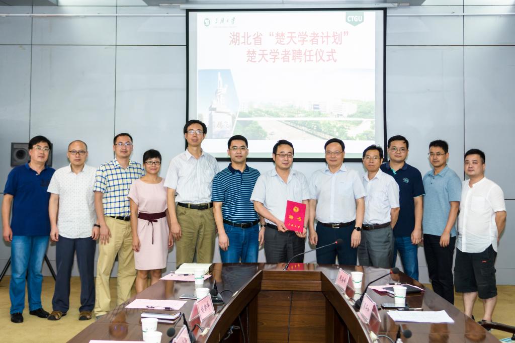 (通讯员李洁)7月9日下午,学校在行政楼一楼会议室举行“楚天学者计划”特聘教授聘任仪式,中国水利水电科学研究院严登华教授受聘我校“楚天学者计划”特聘教授。副校长黄应平为其颁发了聘书。