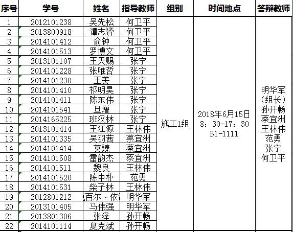 2018届水利水电工程专业毕业设计第二轮答辩安排