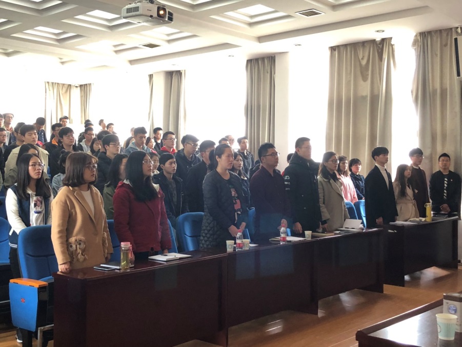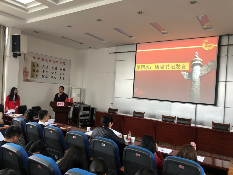 伴随着庄严的团歌声,本次大会拉开了序幕。随后,竞选者依次发言,进行竞聘演讲。参选者们用热情饱满的演讲表达了对我院第一届研究生团支部的期盼与支持,逐一讲述了对团建工作的理解与认识。现场气氛紧张中带着轻松自由,同学们畅所欲言,为学院团建工作的发展献计献策。接下来,在场团员进行了不记名投票,并现场公布了投票结果。最后,院团委书记余扬铭老师作了总结发言,他指出,作为一名新时期的大学生,要“不忘初心跟党走,旗帜鲜明讲政治”,希望广大青年学生要做社会主义的合格建设者和可靠接班人,鼓励新一届团支干部发扬长处、克服困难、披荆斩浪,再创辉煌。