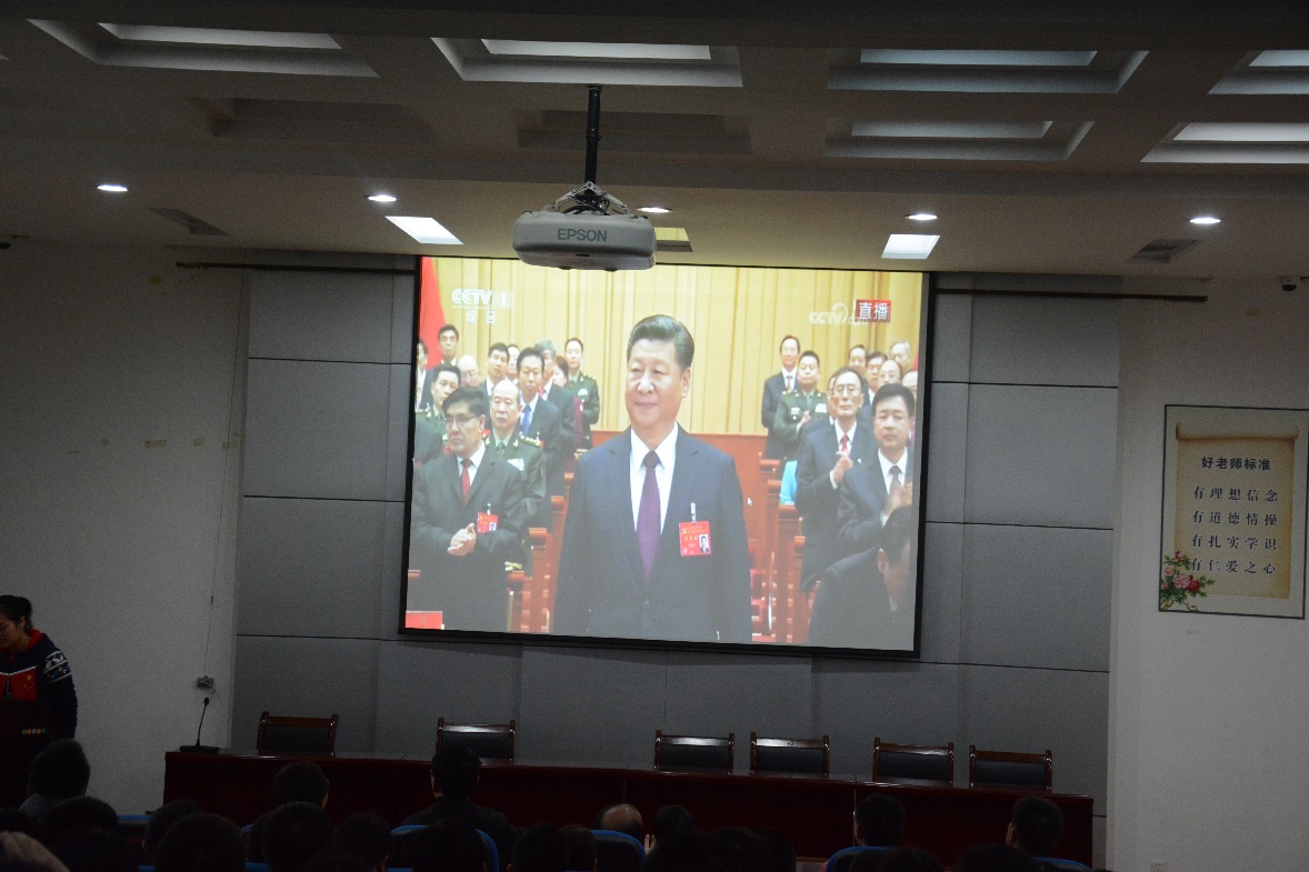 上午九点整,当习近平等党和国家领导人出现在电视屏幕中时,521学术报告厅立刻爆发出了雷鸣般的掌声。在收看过程中,该校广大师生均反响强烈,感同身受,大家用热烈的掌声表达了对总书记讲话的深刻赞同,全神贯注观看十九大直播并认真做好学习笔记。