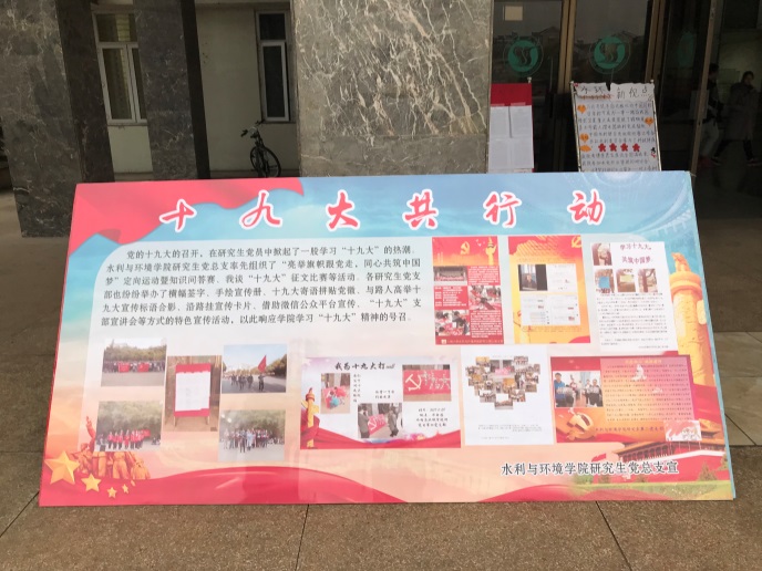 为积极落实《中共三峡大学委员会关于学习宣传贯彻党的十九大精神实施意见》,加强青年大学生思想引领,进一步增进支部成员对党的十九大精神的认知认同感,响应学院“不忘初心跟党走 创新党建带团建”十九大精神宣讲活动,研究生党总支在积极组织开展活动的同时号召6个研究生党支部举办了一系列宣传活动。